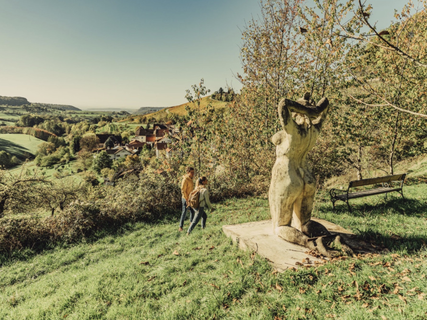 Alle Mitglieder und wanderfreudige Gäste sind herzlich eingeladen, uns dem Besuch der Burgruine Löwenstein und der  Apfelkönigin von Etzlenswenden anzuschließen. Diese Rundwanderung in den Löwensteiner Bergen bietet nach einem kurzen Anstieg einen herrlichen Weitblick über den Breitenauer See hinweg ins Heilbronner Land. Wir streifen den Aussichtspunkt „Platte“, einem weithin bekannten Motorradfahrer-Treffpunkt, und folgenden den Wanderwegen im schattigen Wald. Im Talschluss bei Etzlenswenden und Kaiserbach, wo sich das Quellgebiet des Schmidbachs befindet, treffen wir mitten in den Streuobstwiesen auf die Skulptur „Deutsche Apfelkönigin“ des bekannten Bildhauers Peter Lenk aus Bodman-Ludwigshafen am Bodensee. Nach einer Vesperpause nehmen wir Kurs auf den Bleichsee. Der stille Bleichsee ist künstlich auf der ehemaligen Bleichebene Löwensteins angelegt. Er liegt auf einer Hochfläche in einer Waldlichtung vor dem 432 m hohen Sandberg. Seinen Namen hat der Bleichsee von seiner früheren Nutzung erhalten. Hier befand sich einst die Löwensteiner Tuchbleiche. Leinwand aus Flachsfasern der näheren und weiteren Umgebung wurde gewässert und gebleicht. Von dort aus kehren wir nach einem kurzen Anstieg zurück nach Löwenstein.